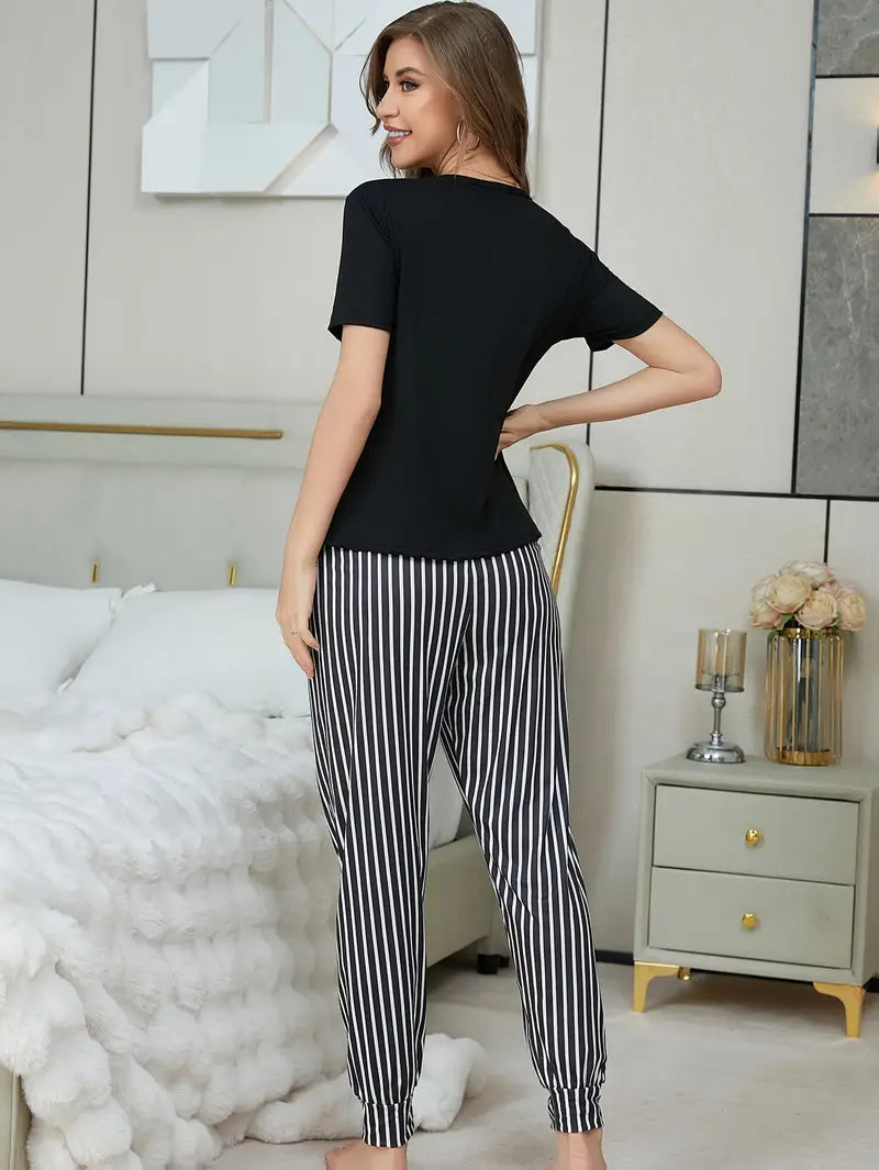 Each set includes a soft short-sleeved round neck top and full-length elastic waist pants made from breathable, skin-friendly fabric. The relaxed fit ensures all-day comfort, while the fun graphics keep your style fresh and youthful. Light enough for warm days and cozy enough for cooler evenings, these sets are ideal for all-season wear.